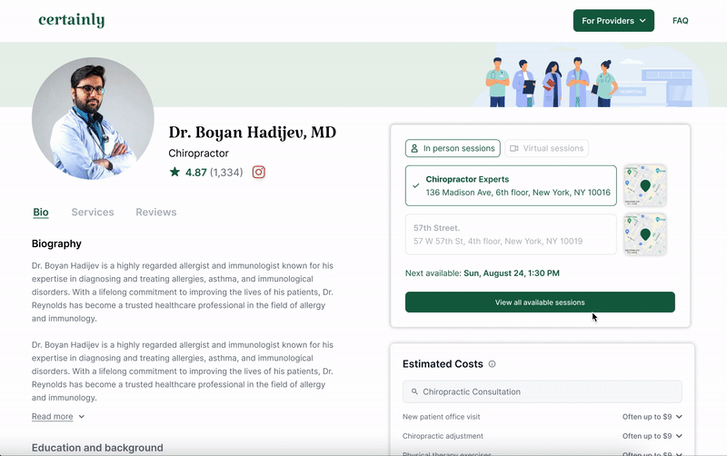 Certainly Health's new provider page is showing some exciting outcomes, with a 350% increase in impressions and better SEO rankings for our partner doctors in just the first month. These new pages and features highlight Certainly Health's commitment to shaking things up in healthcare with innovative design and a mission to make transparency a key part of how users engage with our platform.