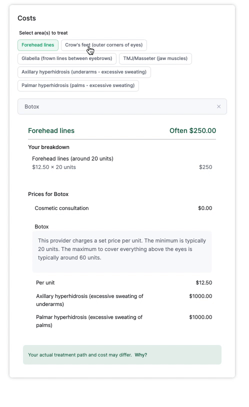 Whether it’s medical or cosmetic, users can now find exact cost breakdowns based on services the provider offers.