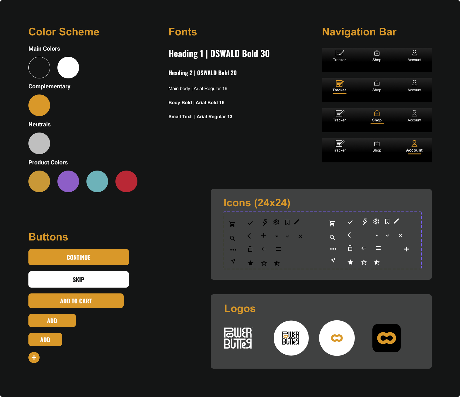 As the Visual Designer of this project, I made sure that the app’s UI visually flowed seamlessly. With the branding that was given to us, the Interaction Lead and I created a design system that would best represent Power Butter and its users.