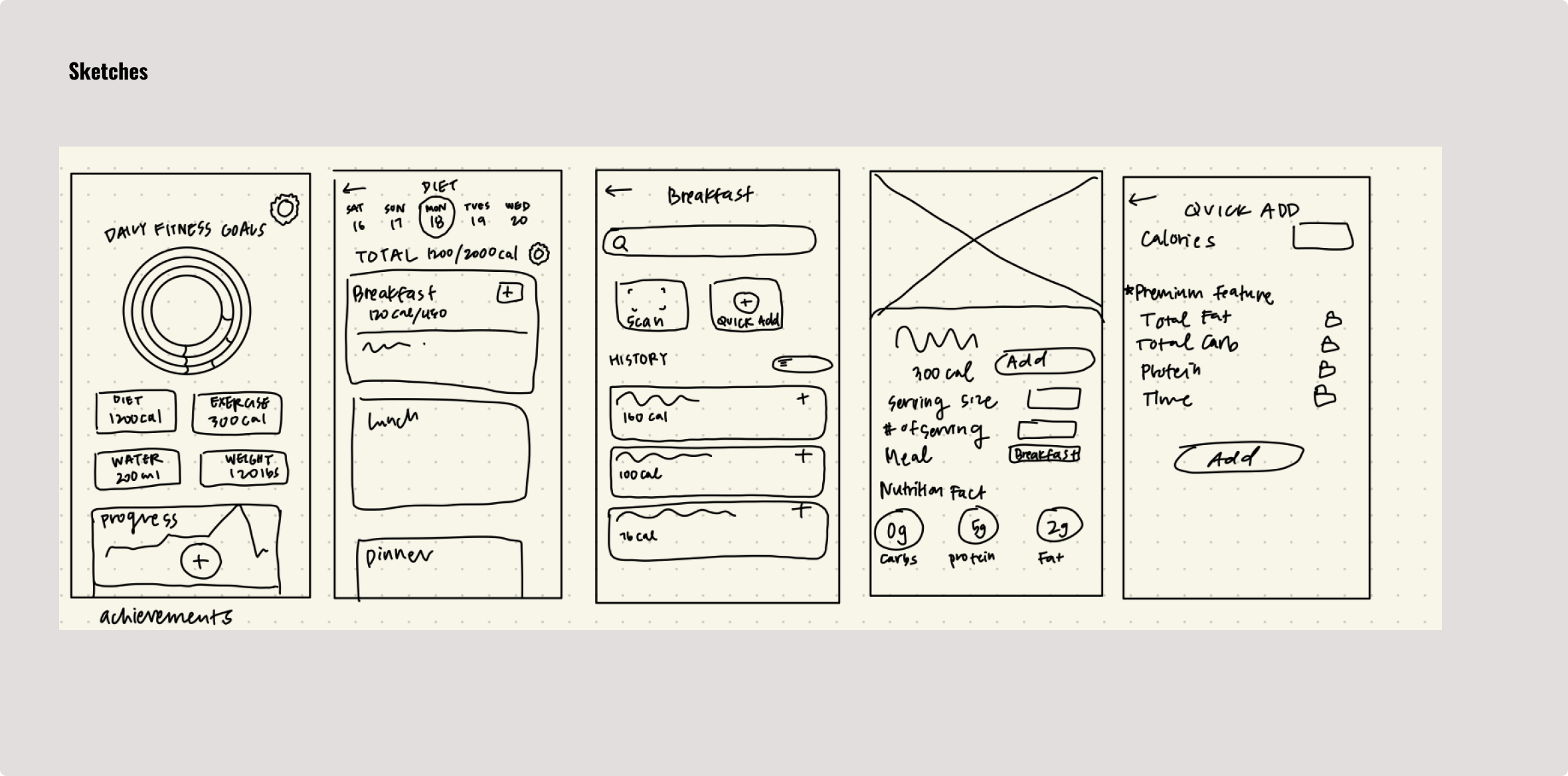Initial sketches of my tracker were created for me to get a vision of what the tracker could look like. I referenced many features from our competitors.