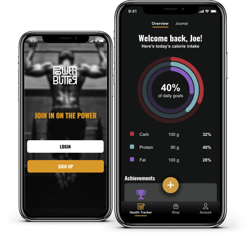 A health & fitness mobile app to help users stay on track of their goals. The goal of this project was to design a high-fidelity prototype of an all-in-one mobile app experience for the brand, Power Butter, where users can organize their nutritional intake through a health tracker and subscribe to a monthly subscription for lactose-free whey protein.